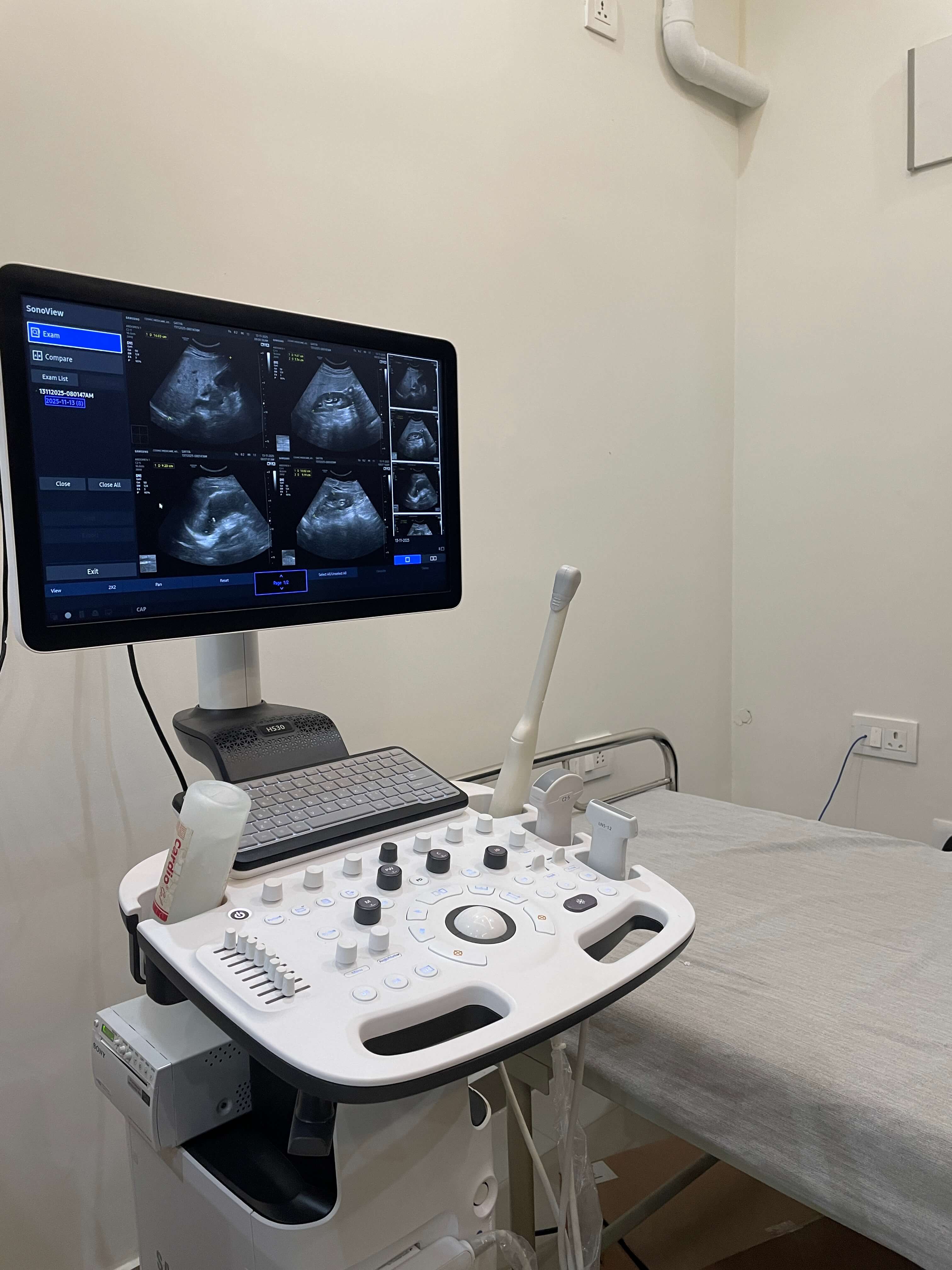 High-resolution ultrasound imaging for diagnostic and obstetric evaluations.